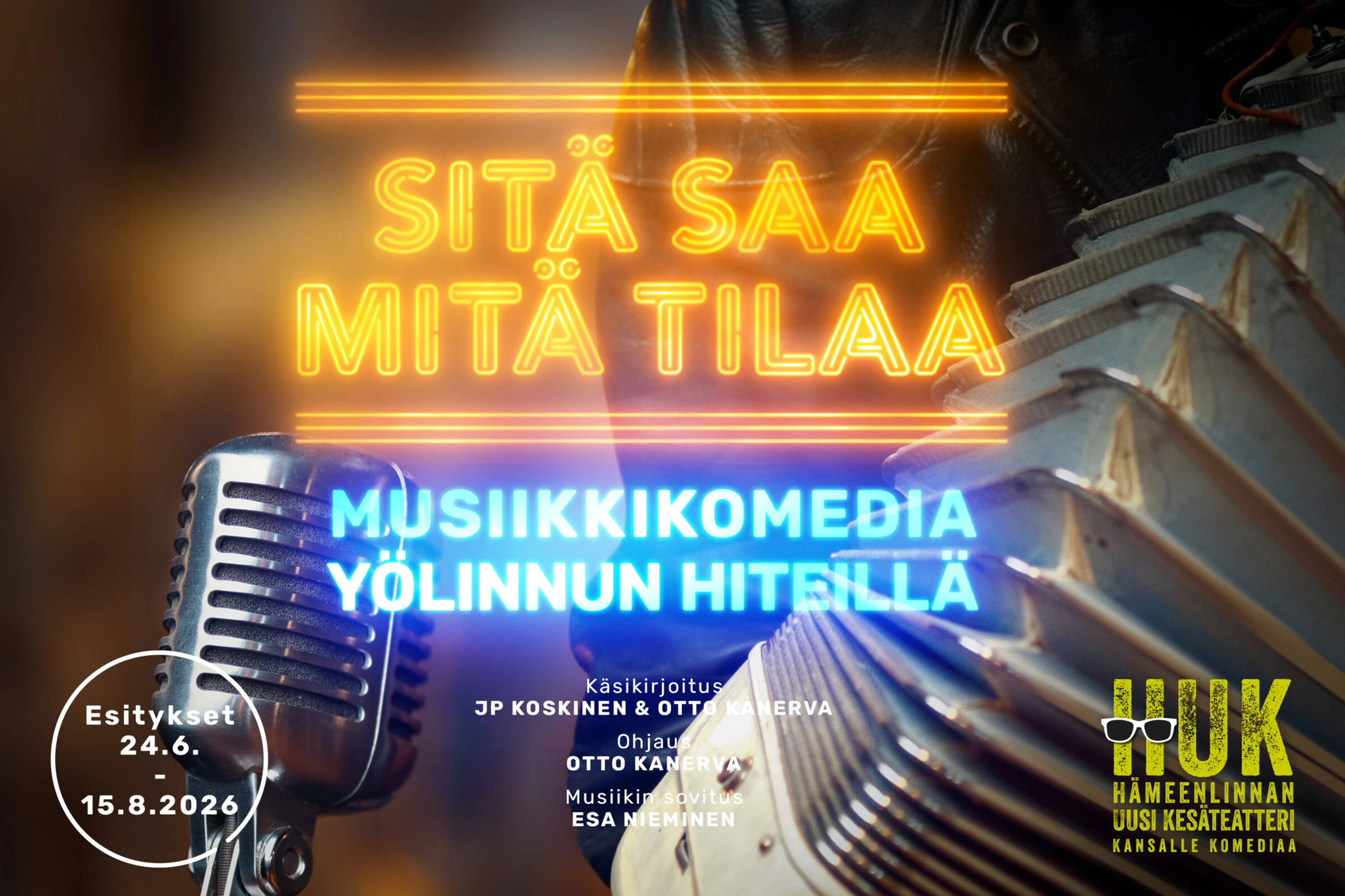 Kesällä 2026 Hämeenlinnan Uudessa Kesäteatterissa Sitä saa mitä tilaa -musiikkikomedia hurmaa Yölinnun hiteillä